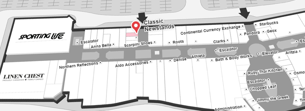 We are located at Classic Newstands, inside Mapleview Shopping Centre, Burlington.